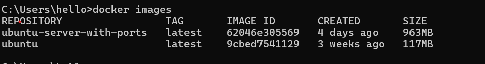 docker run --name ubuntu-server -p 5222:22 Image_name/ID